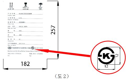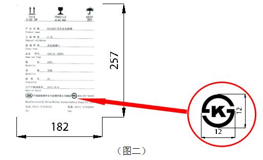 e. 顧客有特殊要求時(shí),另行處理。如:出口韓國(guó)產(chǎn)品裝箱單內(nèi)容包括:產(chǎn)品名稱、公稱厚度、玻璃種類。如圖二:其中 KS認(rèn)證標(biāo)志的直徑為12mm。